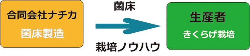 ナチカの純国産きくらげ生産ビジネスは、弊社が製造した菌床を使用し、